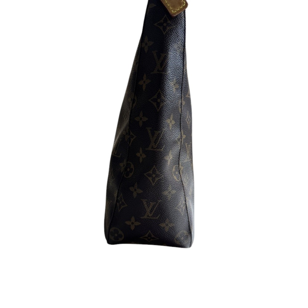 Die Louis Vuitton Looping Monogram Tasche zeigt leichte Gebrauchsspuren, was ihren eleganten Charme noch verstärkt. Das klassische Monogramm Canvas sorgt für zeitlose Eleganz, während die leichte Abnutzung ihre Geschichte erzählt.