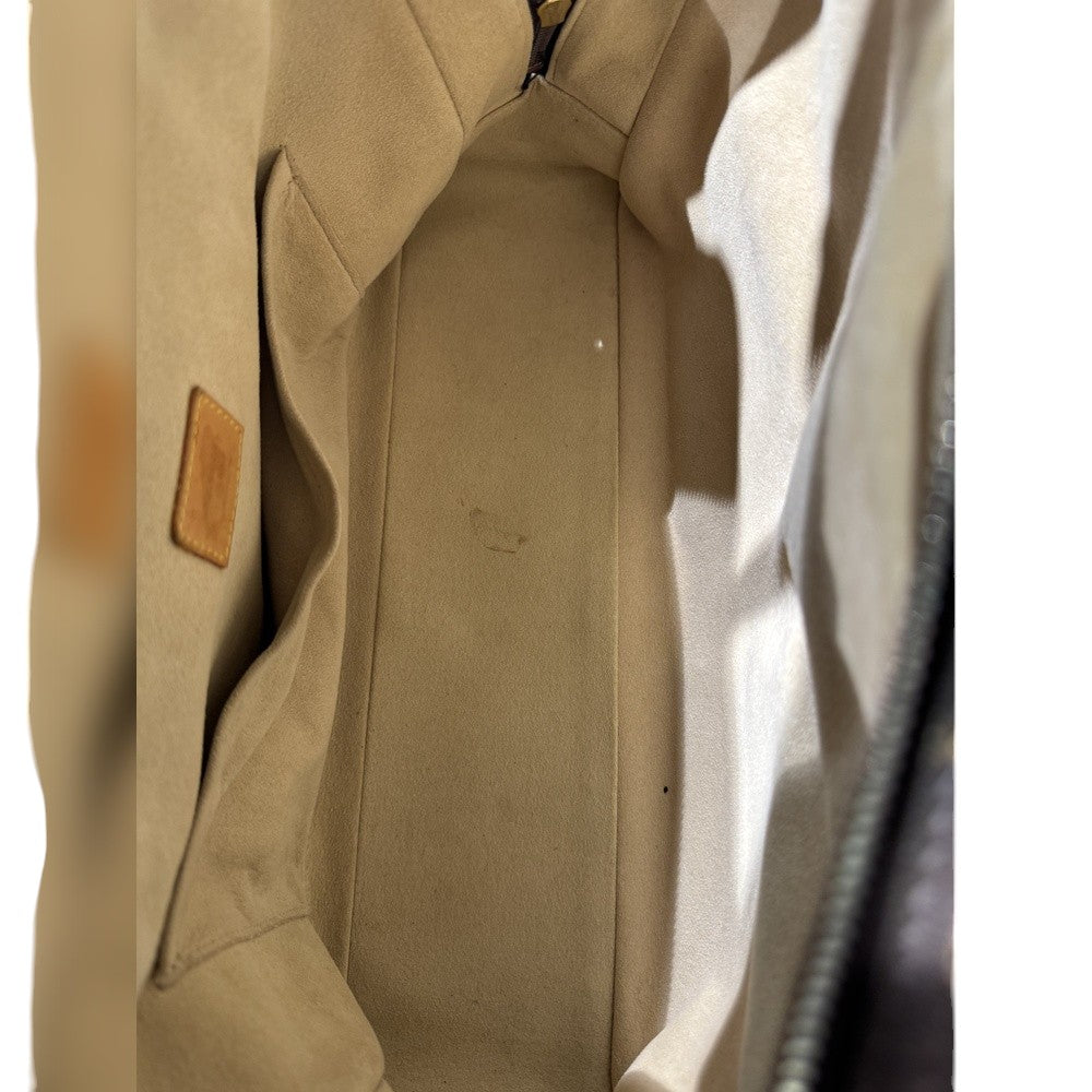 Die Louis Vuitton Manhattan Tasche befindet sich in gutem Zustand mit sichtbaren Gebrauchsspuren an den unteren Ecken, die der Tasche jedoch einen charmanten Vintage-Look verleihen. Sie bietet viel Platz und ist ein eleganter Begleiter für den Alltag oder besondere Anlässe.