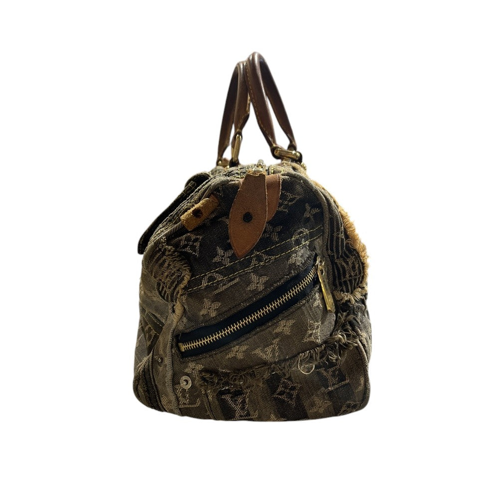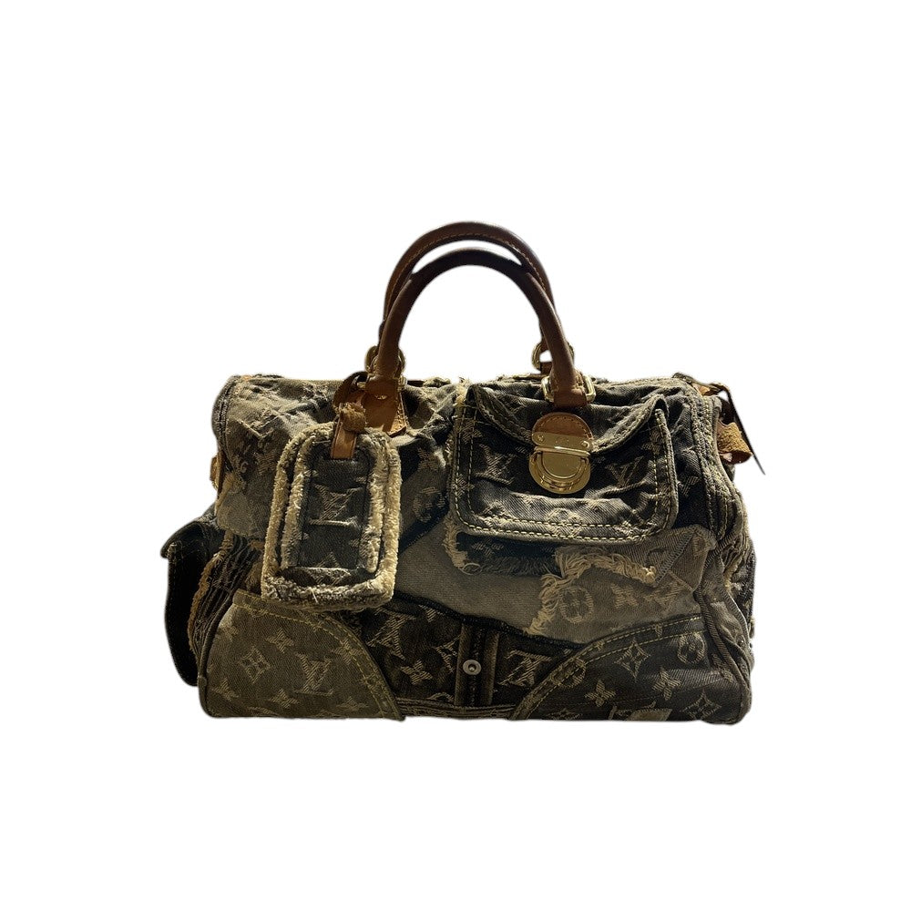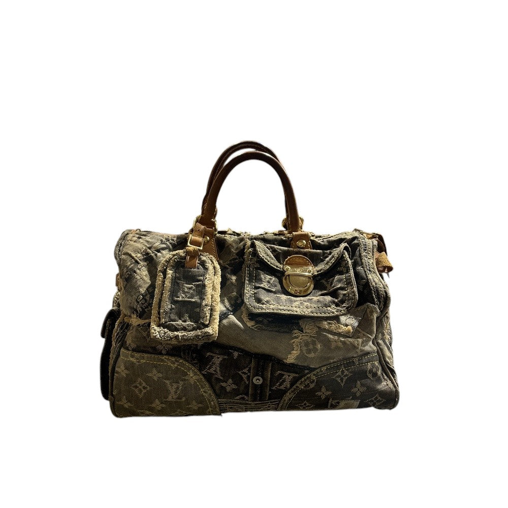 Die Louis Vuitton Patchwork Denim Tasche ist ein außergewöhnliches Sondermodell aus dem Jahr 2007, gefertigt in Frankreich. Der Innenraum überzeugt mit einem sehr guten Zustand, während das Äußere mit einem dezenten Used-Look den unverwechselbaren Charakter der Tasche unterstreicht. Dieses Stück ist ein wahrer Hingucker und perfekt für Liebhaber außergewöhnlicher Louis Vuitton-Designs.