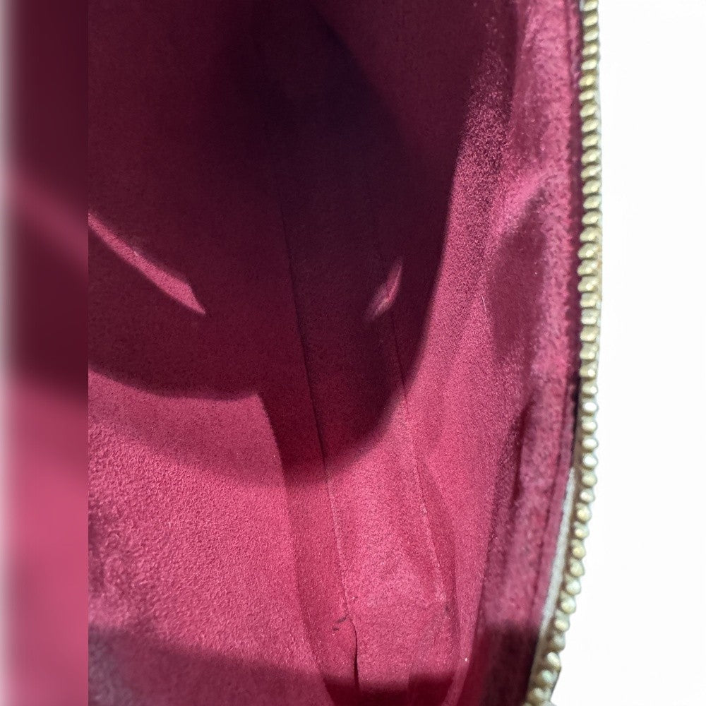 Diese besondere Louis Vuitton Pochette aus der ikonischen Takashi Murakami-Kollektion vereint Kunst und Luxus in einem einzigartigen Design. Die Tasche befindet sich in gutem Zustand, mit einem sehr sauberen und gepflegten Innenraum. Außen zeigt sie leichte Abnutzungsspuren, die ihren Vintage-Charakter unterstreichen.
